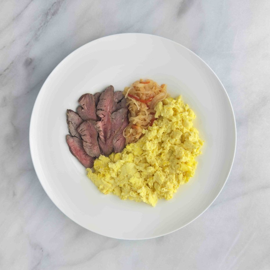 Back to AK Blog Scrambled Eggs with Steak Share $19.95 49g Protein | 26g Fat | 3g Carbs | 1g Fibre | 442 Calories Scrambled Eggs with Steak quantity Add to cart Category: Breakfast (Specialties C) Related products Sweet Potato Pancakes $15.95 Add to cart Hard Boiled Eggs with Smoked Salmon $19.95 Add to cart Banana Chocolate Chip Muffins $15.95 Add to cart Chocolate Chip Raspberry Pancakes $15.95 Add to cart OLDER NEWER